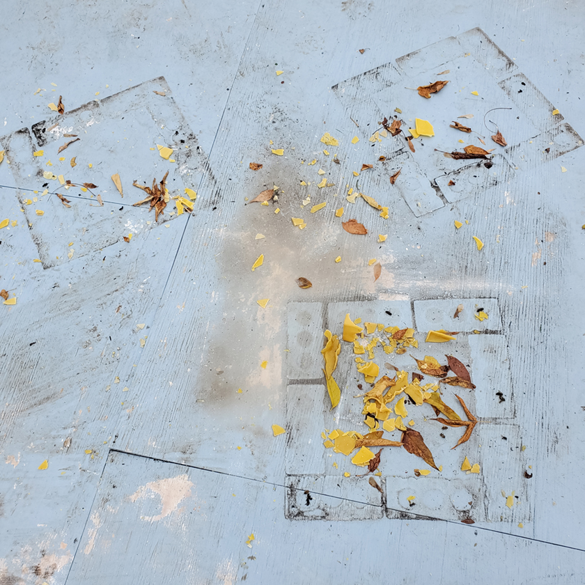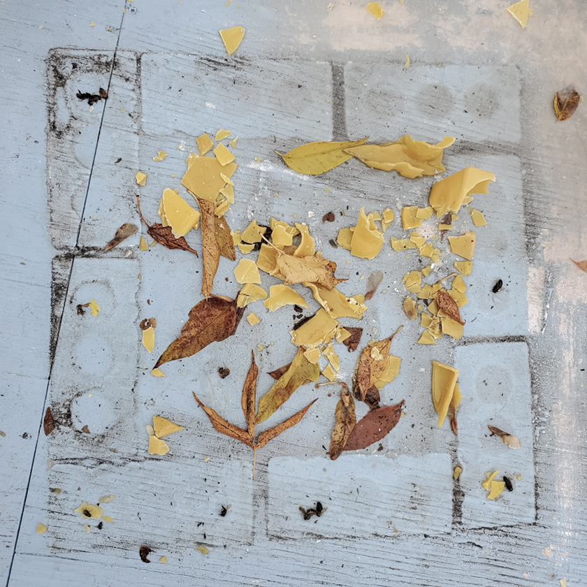 une autre vue des briques de cire d’abeille tombées (LLS)