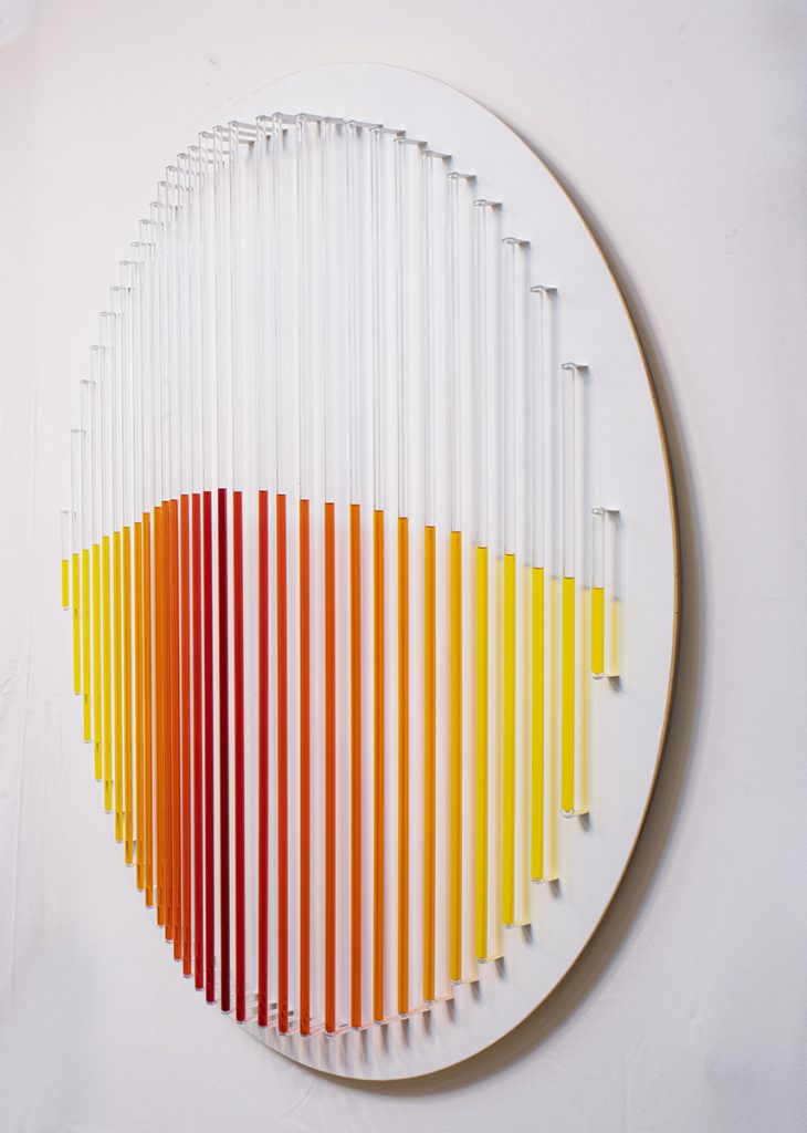 wood, glass tubes, metal, 50% isopropyl, natural dye