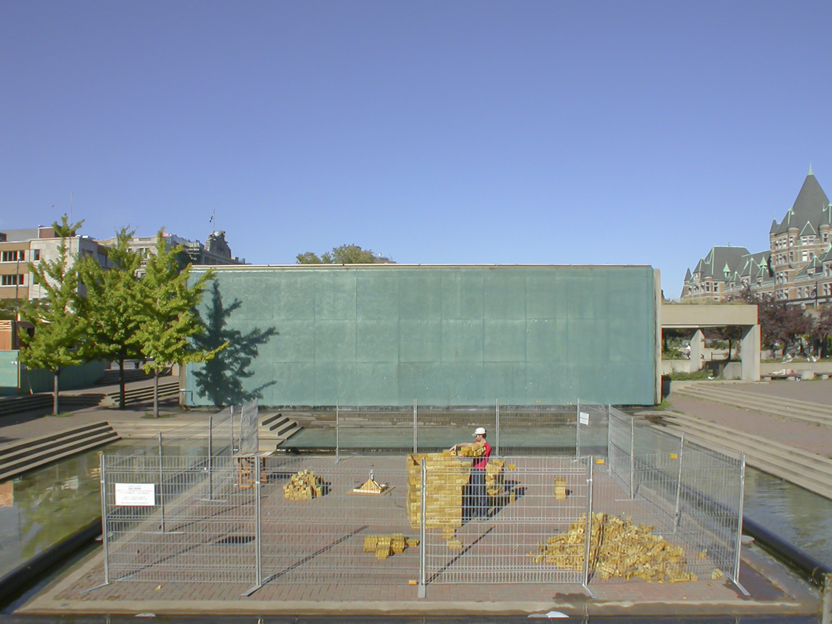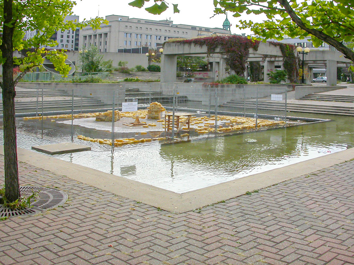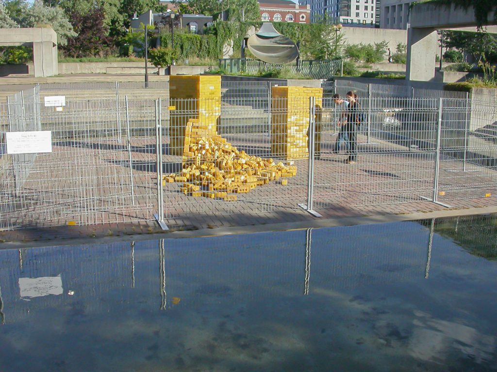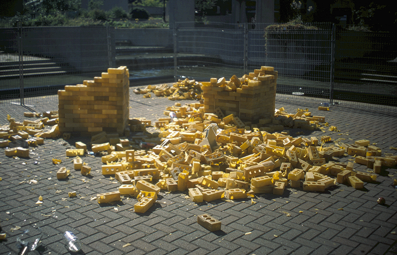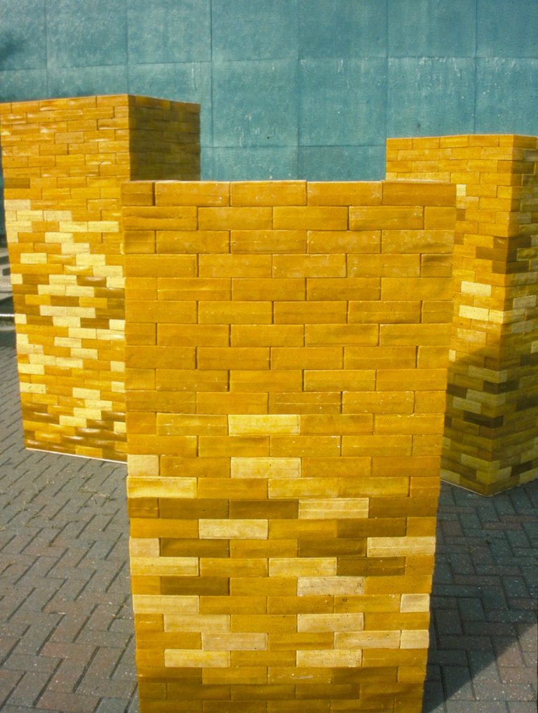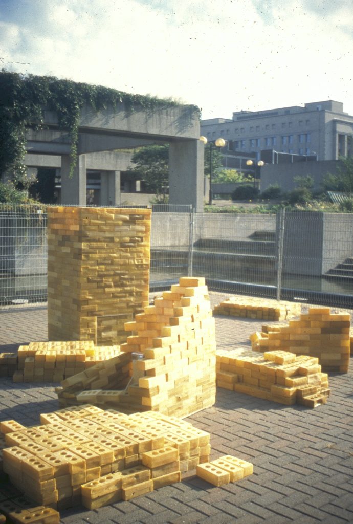The piece consisted of three towers built with 1500 hollow beeswax bricks. The towers were exposed to the elements – natural and social – each of which impacted the stability of the towers causing them to slump or fall over. Over the six-week installation, regular maintenance was applied to rebuild the towers. As the continual deterioration destroyed the bricks, the towers became shorter until there was only one small tower and a large pile of broken brick pieces. The exposed nature of the project allowed for interaction with the public including a group of itinerants who also lived in the park. Initially hostile towards the work, their attitude transformed into active maintenance and voluntary security.