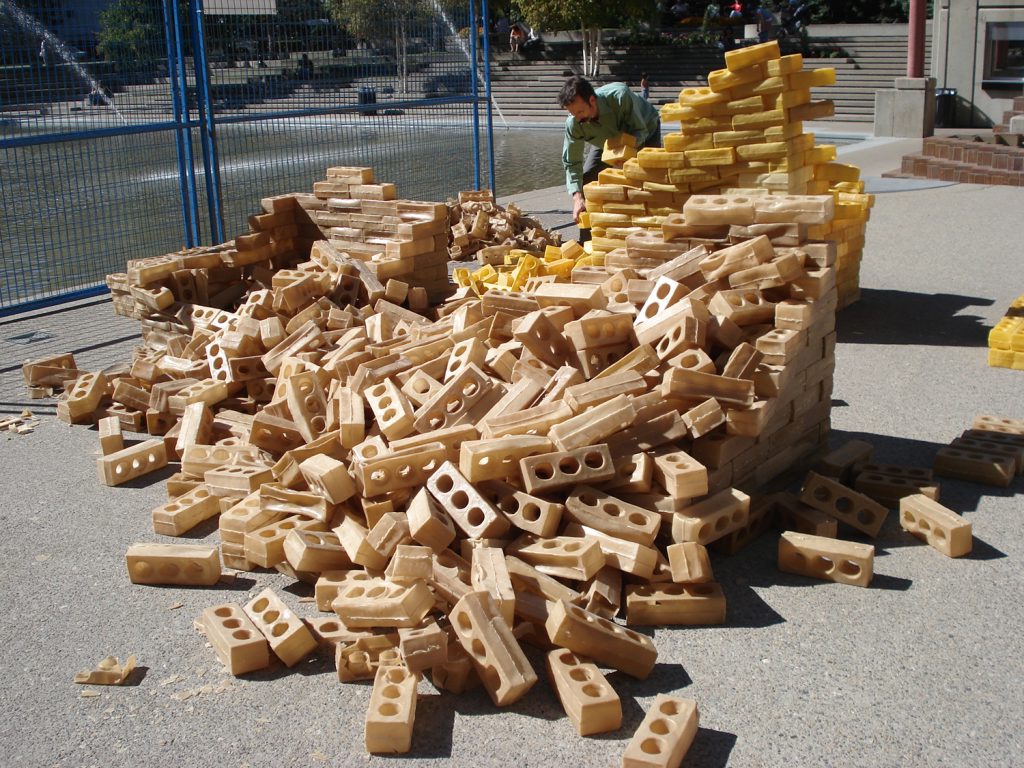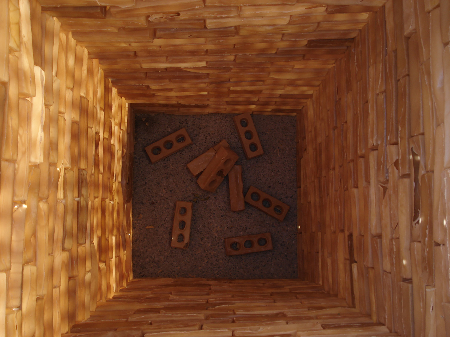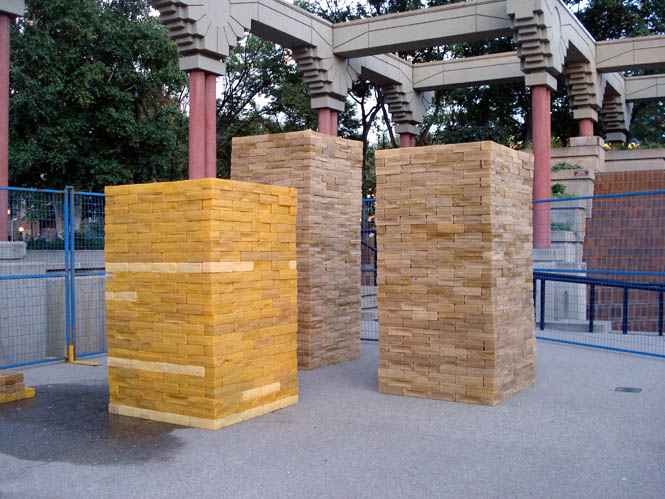 This installation of the cast beeswax bricks was effected by natural elements, wind and heat. The social factor was more of curiosity with no noticeable vandalism throughout the week-long installation, a result surely tempered by the on-site security for the event.